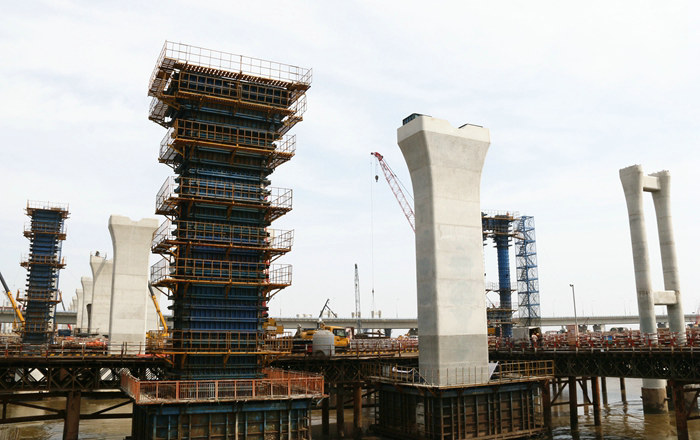 該項目部的一項項舉措緊貼實際,為施工的正常進(jìn)行提供了強有力保證,目前主線橋完成橋墩270座,主線和金塘拼寬橋、匝道橋完成248座橋墩,尚有288座橋墩在穩(wěn)步推進(jìn)中。