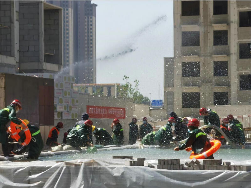 為牢固樹立“生命至上、安全第一”的理念,健全項目安全防控和應(yīng)急工作機(jī)制,切實提高項目防汛應(yīng)急處置能力,積累防汛實戰(zhàn)經(jīng)驗,增強(qiáng)工人的防汛防災(zāi)意識,5月17日,鄭州航空港經(jīng)濟(jì)綜合實驗區(qū)規(guī)劃市政建設(shè)環(huán)保局在中交四公局第二建筑公司河南省直青年人才公寓項目組織開展2022年建筑工地防汛應(yīng)急演練。