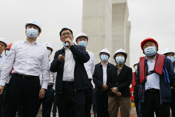 湯飛帆聽取匯報后提出三點要求:一是加快項目建設步伐,要有工期意識,要按期完成各項建設任務。二是加強質量管理,濱?;ネㄊ鞘±锖蛯幉ㄊ械闹攸c工程,在確保安全的前提下,保證施工質量,建造優(yōu)質工程。三是做好新冠疫情防控工作,管好隊伍,工程要干,疫情也要預防,確保平平安安。