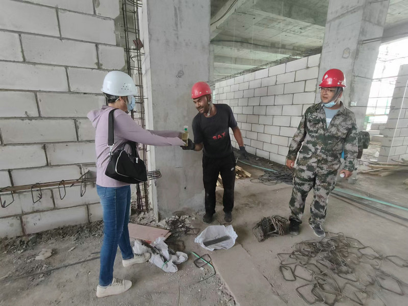 活動中,工會主席李紅還深入昆玉職業(yè)技術學院(一期)項目施工一線慰問看望工人,與他們親切交談,叮囑工人們注意防暑降溫和勞動保護,切實做到安全生產和職業(yè)健康,并感謝工人們克服各種困難,在高溫下堅守崗位,為項目建設做出了積極貢獻。同時,她還反復交待項目部管理人員和各班(組)長,要加強管理,科學制定食譜,注重勞逸結合,多開展文體活動,嚴格落實高溫天氣作業(yè)安全防護措施,切實做好當前防暑降溫和安全生產工作。