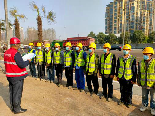 “進(jìn)入施工現(xiàn)場的作業(yè)人員必須正確佩戴個(gè)人安全防護(hù)用品,正確穿著反光背心,正確佩戴安全帽,發(fā)現(xiàn)異常情況和不安全因素必須及時(shí)排除,遇到個(gè)人解決不了的問題要及時(shí)向現(xiàn)場管理人員匯報(bào),今天我們開始的路基水穩(wěn)基層攤鋪要注意……”在施工現(xiàn)場,該項(xiàng)目安環(huán)部負(fù)責(zé)人對(duì)即將開始一天作業(yè)的工友仔細(xì)交代。