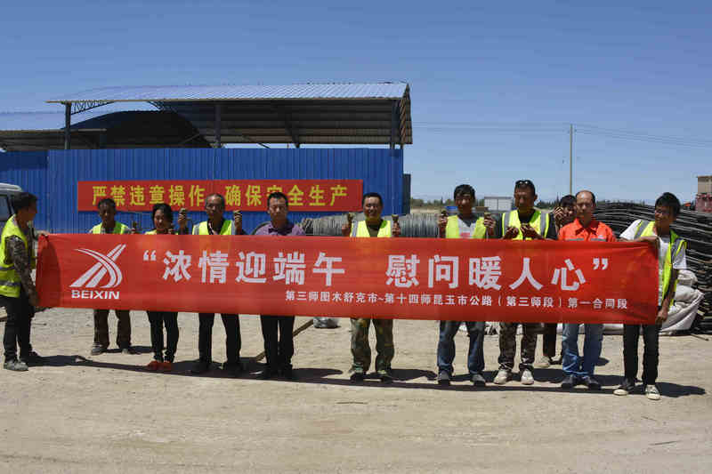 圖木舒克訊(通訊員 梁毅)又逢一年端午至,片片粽葉裹溫情。在端午節(jié)即將來臨之際,6月2日,北新路橋集團(tuán)圖昆公路(三師段)一標(biāo)項目工會開展“濃情迎端午 慰問暖人心”慰問活動,把端午的祝福送給堅守一線的農(nóng)民工兄弟,感謝一線員工的辛勤工作。