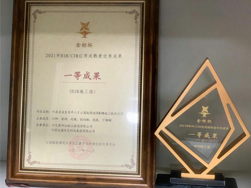 近日,中交四公局第二建筑公司《河南省省直人才公寓航港南苑項目的BIM技術應用》榮獲2021年“金標杯”BIM施工組一等成果。