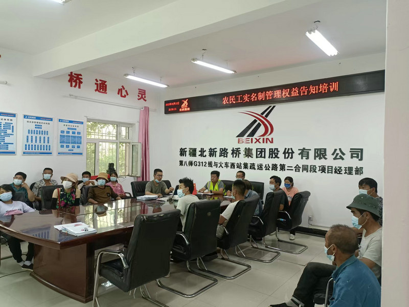 近日,新疆北新順通路橋公司 G312項目部組織項目管理人員及進場勞務(wù)工開展“農(nóng)民工實名制管理權(quán)益告知培訓(xùn)”,內(nèi)容包括“實名制管理的目的及意義”“農(nóng)民工維權(quán)告知”“農(nóng)民工工資支付保障條例”