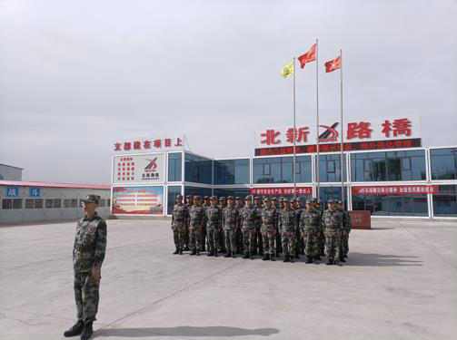 “聽黨指揮,能打勝仗,作風(fēng)優(yōu)良”,伴隨著節(jié)奏整齊劃一列隊(duì),嘹亮的口號(hào)聲響徹駐地。6月13日,北新路橋集團(tuán)西安分公司蘭州新區(qū)項(xiàng)目民兵連統(tǒng)一著裝、精神抖擻列隊(duì)操練,接受十一師“兵”字號(hào)工程調(diào)度檢閱。