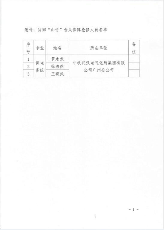表?yè)P(yáng)信指出,臺(tái)風(fēng)發(fā)生后,項(xiàng)目部發(fā)揚(yáng)“一方有難、八方支援”精神,與電車人民心聯(lián)心、肩并肩,共克時(shí)艱、共度難關(guān),為電車公司成功抵御臺(tái)風(fēng)、保障供電設(shè)備系統(tǒng)給予了全力的支持和幫助。體現(xiàn)了廣州分公司較高的企業(yè)管理水平。希望中鐵武漢電氣化局廣州分公司在今后的工作中再接再厲,充分發(fā)揚(yáng)防御臺(tái)風(fēng)工作中煥發(fā)出來(lái)的團(tuán)結(jié)一致、頑強(qiáng)奮戰(zhàn)的精神,充分發(fā)揮團(tuán)隊(duì)先鋒模范作用,實(shí)現(xiàn)完美履約。并對(duì)防臺(tái)風(fēng)工作中積極參與,配合高效及表現(xiàn)突出的羅木龍、徐浩然及王曉武三名同志給予表?yè)P(yáng)。