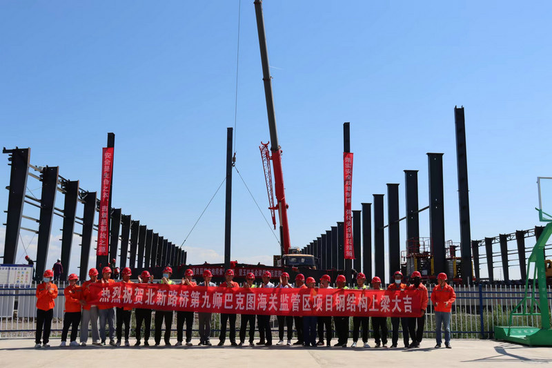 163團(tuán)訊(通訊員 趙雅瑾)自項(xiàng)目建設(shè)以來,巴克圖經(jīng)濟(jì)技術(shù)開發(fā)區(qū)海關(guān)特殊監(jiān)管區(qū)建設(shè)項(xiàng)目積極搶抓項(xiàng)目工期,全力以赴加快推進(jìn)項(xiàng)目建設(shè),確保項(xiàng)目如期交付。近日,國際工程事業(yè)部第九師巴克圖經(jīng)濟(jì)技術(shù)開發(fā)區(qū)海關(guān)特殊監(jiān)管區(qū)建設(shè)項(xiàng)目舉行上梁儀式。