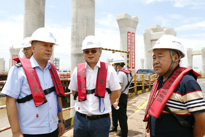 上午11點10分,呂聰儒率綜合組來到濱海互通,公司副總經(jīng)理兼杭甬項目負責人黃偉簡要匯報了濱海互通工程進展情況。他說,項目部按照業(yè)主施工計劃一步步向前推進,1027根樁基還剩2根,171座承臺完成155座,634座墩柱完成378座,G匝道架梁15跨30片。在安全管理上,認真落實浙江省、寧波市和業(yè)主的安全管理規(guī)定,開工以來未發(fā)生一次事故。施工質(zhì)量在各方組織的歷次大檢查中均受到好評。呂聰儒查看了D匝道正在施工的樁基、墩柱,對濱?;ネǖ陌踩①|(zhì)量、進度、環(huán)保等給予充分肯定。他說:“這個互通的橋墩外觀很美觀。”他提出兩點要求:一是繼續(xù)抓好安全質(zhì)量、進度、環(huán)保,標準不能降低,這座橋是寧波市的標志性工程,影響大,工程一定要干好。二是進入伏天,氣溫高,要關(guān)心員工身體健康,做好防暑降溫工作,讓員工安全度夏。