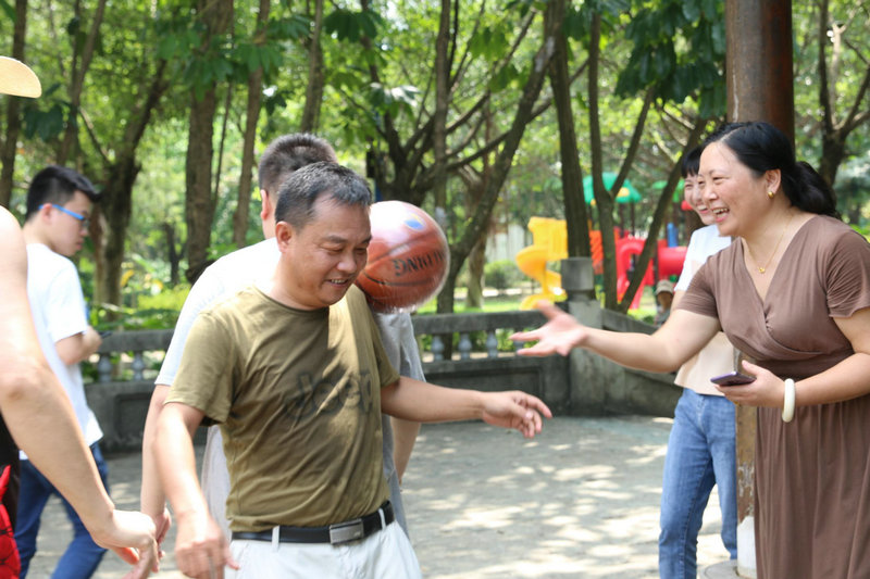 在之后進(jìn)行的集體游戲中,大家興趣高昂。你說我猜游戲中,領(lǐng)教了過人的才智和淵博的學(xué)識,看見了令人捧腹的描述和讓人噴飯的答案;背夾籃球接力賽,大家別扭的造型也令人忍俊不禁;跳大繩環(huán)節(jié),跳躍的身影,爽朗的笑聲,激動(dòng)的吶喊,員工們像那躍動(dòng)的精靈,攜手并肩,全力以赴;隨后的乒乓球投籃,一個(gè)個(gè)投出的球在空中劃過優(yōu)美的弧度;在最后的答題環(huán)節(jié),考驗(yàn)了大家的黨建及企業(yè)管理、傳統(tǒng)文化等方面知識,在娛樂中拓寬了大家的知識面。