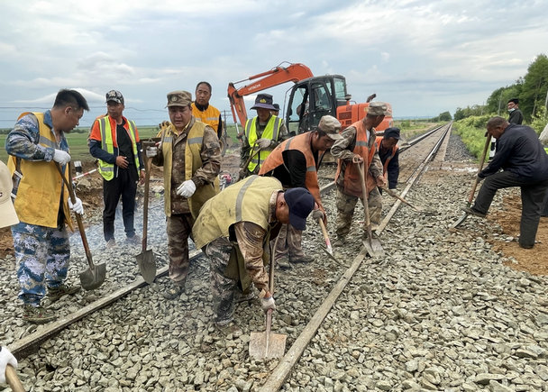 “北黑鐵路錦河至西崗子區(qū)間K261+600地段發(fā)生洪水沖毀路基30米情況,情況危急,請(qǐng)求支援”。6月23日15時(shí)03分,接到黑龍江省黑河鐵路集團(tuán)有限責(zé)任公司求援電話的中鐵二十三局集團(tuán)北黑鐵路項(xiàng)目部迅速啟動(dòng)應(yīng)急預(yù)案,緊急趕赴水害現(xiàn)場(chǎng)投入搶險(xiǎn)之中。