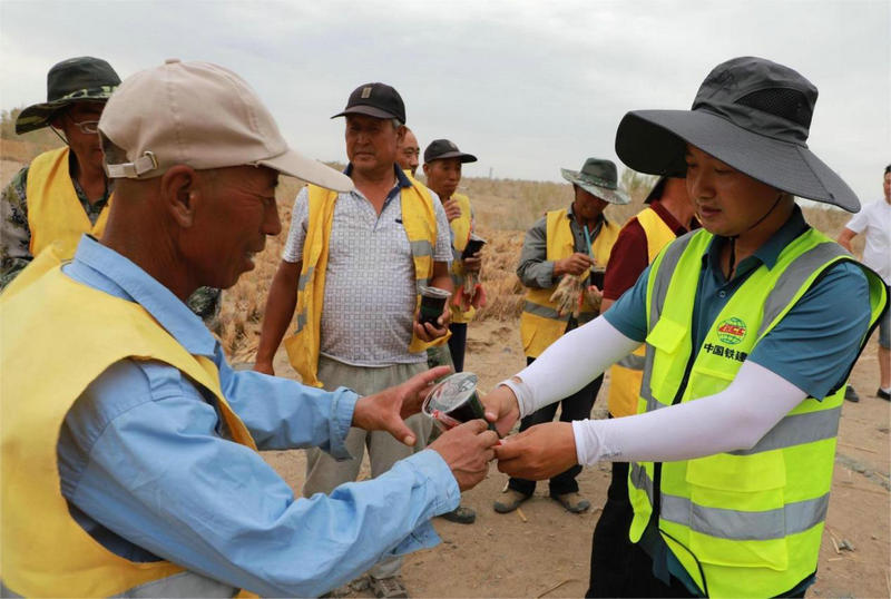 進(jìn)入夏至后,準(zhǔn)格爾盆地的溫度持續(xù)飆升,沙漠腹地氣溫高達(dá)50余度。烏將鐵路途經(jīng)準(zhǔn)格爾盆地,沿途是一望無(wú)際的大沙漠,酷暑難耐,預(yù)防一線員工中暑、保障員工身體健康成了項(xiàng)目領(lǐng)導(dǎo)最關(guān)注的事情。持續(xù)的高溫天氣下,項(xiàng)目部派專車在烏將鐵路沿線送去礦泉水、藿香正氣水等物資,“要是有一瓶冰鎮(zhèn)的解暑湯就好了……”這個(gè)念頭讓領(lǐng)導(dǎo)們靈機(jī)一動(dòng),馬上安排項(xiàng)目部、作業(yè)隊(duì)的食堂開(kāi)始熬制酸梅湯,并打包送往施工一線。