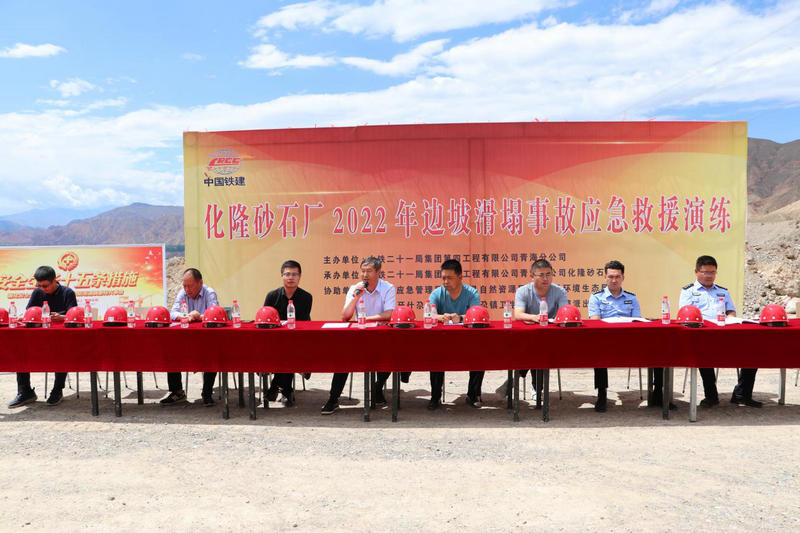 為全面落實非煤露天礦山安全生產(chǎn)和防汛工作部署,6月27日,中鐵二十一局四公司青海分公司化隆砂石廠開展了2022年邊坡滑塌事故應(yīng)急救援演練活動?;】h應(yīng)急管理局、化隆縣牙什尕鎮(zhèn)政府相關(guān)領(lǐng)導(dǎo)到場觀摩指導(dǎo),中鐵二十一局四公司副總經(jīng)理柳倉太,總部安全監(jiān)督部部長以及青海分公司全體人員參加活動。