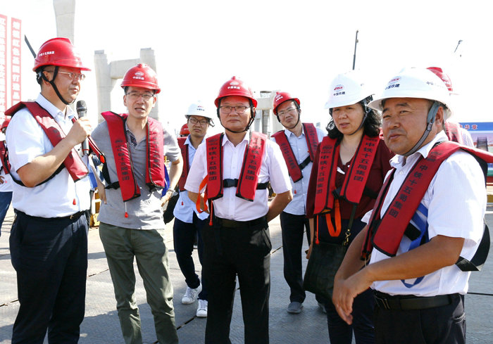 在杭甬項(xiàng)目濱?;ネㄊ┕がF(xiàn)場,葉昌勇處長查看了濱?;ネˋ匝道正在施工的承臺、墩身情況,聽取了公司副總經(jīng)理兼杭甬項(xiàng)目負(fù)責(zé)人黃偉關(guān)于濱?;ネüこ谈艣r、施工進(jìn)度、安全質(zhì)量、面臨的施工難題、隊(duì)伍建設(shè)等方面的情況介紹和下一步重點(diǎn)突破的鋼箱梁生產(chǎn)和架梁節(jié)點(diǎn)。葉昌勇對該項(xiàng)目在安全、質(zhì)量、環(huán)保等方面取得的成績表示贊賞。他強(qiáng)調(diào):濱?;ネㄊ莵喼拮畲蟮暮I匣ネ屑~,是浙江省、寧波市的重點(diǎn)工程,質(zhì)量要求高、安全風(fēng)險(xiǎn)大,面臨的困難多,十五局團(tuán)隊(duì)能干成現(xiàn)在這樣,不容易,希望你們后期要加快施工進(jìn)度,錨定任務(wù)目標(biāo),確保完成各個(gè)節(jié)點(diǎn)。目前正是高溫季節(jié),紫外線很強(qiáng),要做好暑天員工的安全防護(hù)工作,海上建橋,每天要跟金屬打交道,要穿長袖工作服、戴安全防護(hù)手套,避免燙傷皮膚。同時(shí),要做好防暑降溫工作,要多多關(guān)愛員工,讓他們吃好、睡好、上班精力充沛,不走神。其次,要高度重視高墩裝、拆模工序,作業(yè)人員要拴好保險(xiǎn)繩,不能怕麻煩,麻痹大意容易引發(fā)安全事故。