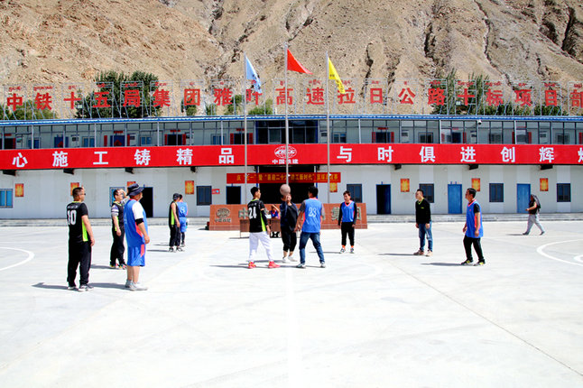 座談會結(jié)束后,項(xiàng)目黨支部為每名黨員發(fā)放了政治生日賀卡及學(xué)習(xí)筆記本等物品。還組織與尼木縣交通局、檢查站聯(lián)隊(duì)進(jìn)行了一場籃球友誼賽,比賽中、雙方隊(duì)員積極拼搶、勇猛頑強(qiáng)、既賽出了友誼、又賽出了水平。在熱烈的氣氛中圓滿完成了此次主題黨日活動。