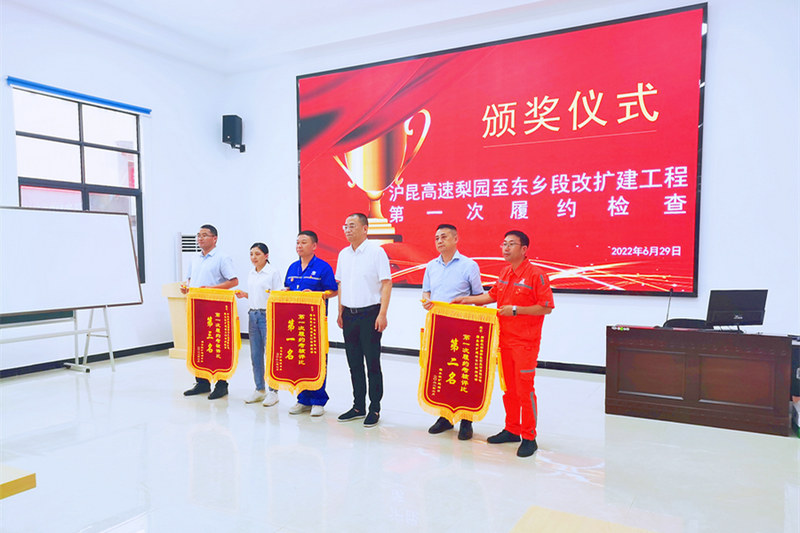 橫峰訊(通訊員 曾妮)6月29日,在滬昆高速梨東改擴(kuò)建工程第一次履約檢查表彰會(huì)上,北新路橋集團(tuán)長沙分公司滬昆高速梨東改擴(kuò)建工程B1標(biāo)項(xiàng)目部喜獲第二名的優(yōu)異成績,打響了開工建設(shè)第一槍。