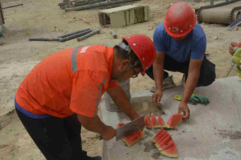 該項(xiàng)目正值建設(shè)高峰期,廣大工友們不畏酷暑,在高溫下堅(jiān)守崗位,見(jiàn)此狀況,項(xiàng)目部工會(huì)小組迅速行動(dòng),為工人們送去藿香正氣水、西瓜、綠豆等防暑物品。項(xiàng)目部負(fù)責(zé)人叮囑勞務(wù)隊(duì)要合理安排高溫天氣下工人的施工計(jì)劃,妥善安排好工人的生活飲食,并加強(qiáng)高溫期間的安全生產(chǎn)檢查力度,保障工人安全的工作環(huán)境,主動(dòng)作為,多措并舉戰(zhàn)勝酷暑。