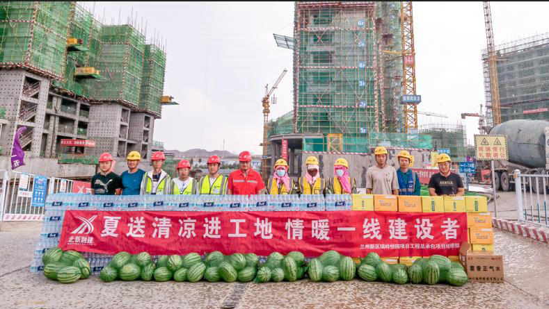 為做好夏季施工防暑降溫工作,切實(shí)保障一線施工作業(yè)人員身體健康,維護(hù)現(xiàn)場(chǎng)安全生產(chǎn)秩序平穩(wěn)有序。7月10日,北新路橋集團(tuán)西安分公司蘭州新區(qū)項(xiàng)目工會(huì)小組組織開(kāi)展“夏送清涼進(jìn)工地,情暖一線建設(shè)者”慰問(wèn)活動(dòng),為烈日下堅(jiān)守崗位的建設(shè)者們,送上西瓜、礦泉水、飲料等防暑降溫慰問(wèn)品。