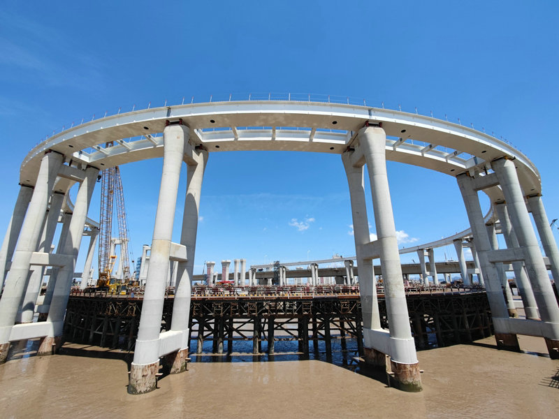 由鐵道兵5師22團演變過來的中鐵十五局集團二公司,在浙江省重點建設項目—浙江杭(州)甬(寧波)一期高速公路全長14.6公里、總投資21.547億元的濱海高架和亞洲最大的海上立交—濱?;ネ屑~項目建設中,充分發(fā)揮“特別能吃苦、特別能戰(zhàn)斗、特別能奉獻”的鐵道兵精神,以科技為先導,敢于挑戰(zhàn)不可能,攻克多道難關,插入海底直徑1.8米—2.5米、平均98米長的鋼護筒1739根,樁基、墩身施工3次成功下穿著名的金塘大橋;安全通過海底盾構、直徑4.5米的輸油管道等17條管線;811座6.8米—25.5米的橋墩完成70%;濱海高架主體工程順利完工,濱?;ネ芰?0片,施工安全質量、進度環(huán)保在業(yè)主、省市交通等部門歷次檢查中,均受到好評,被浙江省交通工程管理中心評為2021年平安工地省級示范合同段,榮獲寧波市交通局授予的2020年、2021年平安工地示范合同段稱號,今年五四前夕,榮獲共青團寧波市委交通運輸2022年度青年文明號稱號。