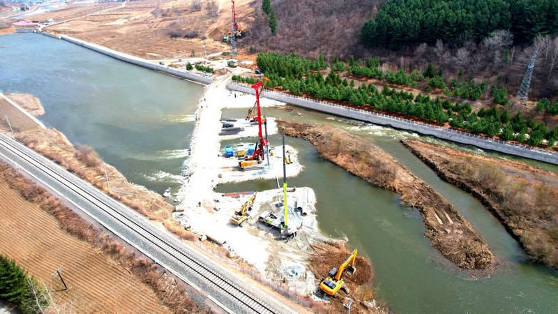 面對今年氣候異常、雨季到來早、極端天氣頻發(fā)及鄰近既有線施工等不利因素,中鐵二十三局沈白高鐵項目部,在優(yōu)化調整施工組織方案的基礎上,制定了汛期施工應急預案和鄰近既有線安全卡控保障措施。為了降低水中作業(yè)安全風險,經過溝通協(xié)調,采取了庫區(qū)低水位蓄容、水中筑島圍堰、改移河道等辦法,迅速打開了施工局面。并與當?shù)貧庀蟛块T和水庫建立溝通聯(lián)絡機制,及時準確掌握天氣變化及水庫水位變化情況,動態(tài)調整施工計劃,為施工安全保駕護航。