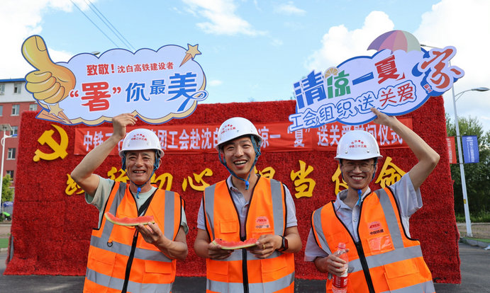 一聲聲問候、一句句叮囑,傳遞著工會組織的溫馨關(guān)愛,讓大家備受激勵和鼓舞。“目前沈白高鐵施工已經(jīng)進入了全面攻堅階段,工期節(jié)點壓力大、任務(wù)繁重。特別是入伏以來,炎熱天氣居高不下,項目在抓好施工進度的同時,采取了合理調(diào)整作息時間避開高溫時段戶外作業(yè),食堂增加涼菜、綠豆湯等降溫飲食等辦法,多措并舉落實防暑降溫措施。我們要把組織的關(guān)懷化作攻堅克難的強大動力,不負(fù)重托、守土擔(dān)責(zé),不僅工程要為企業(yè)爭光創(chuàng)譽,更要保證職工度過健康安全的盛夏”項目經(jīng)理田延巍的對員工關(guān)愛之情溢于言表,又表明了項目的決心和態(tài)度。