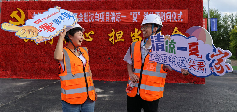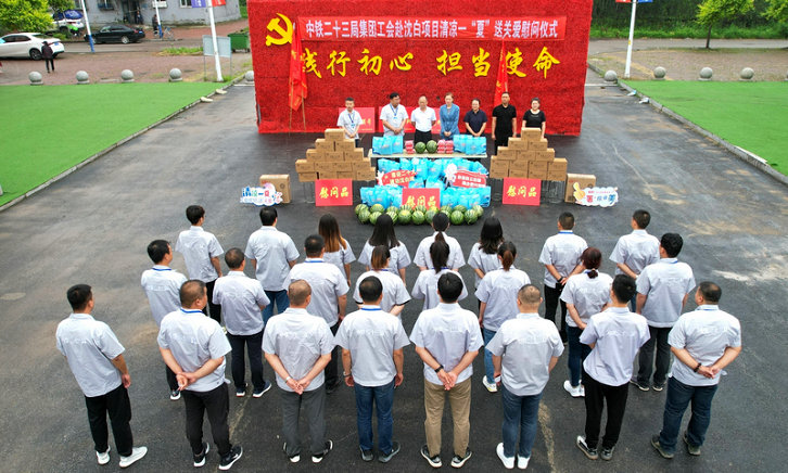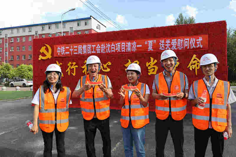 北國盛夏、酷暑難耐。7月18日,中鐵二十三局集團有限公司工會“清涼一‘夏’送關(guān)愛”慰問活動,走進正在緊張施工沈白高鐵項目部,向戰(zhàn)高溫、斗酷暑,堅守施工生產(chǎn)一線的建設(shè)者致敬,送來了工會組織的關(guān)心和問候。