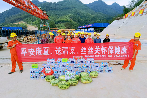 國(guó)道G235線尤溪西城至新陽(yáng)公路工程三期項(xiàng)目黨支部,聯(lián)合工會(huì)小組提前安排部署,結(jié)合崗前培訓(xùn)、班前教育,廣泛宣傳高溫天氣防暑降溫知識(shí);由黨員干部帶隊(duì),對(duì)沿線14公里作業(yè)面的工人們送去西瓜、礦泉水、人丹、藿香正氣液、清涼油等防暑降溫食(藥)品、飲品,要求各班組負(fù)責(zé)人嚴(yán)格遵守項(xiàng)目部下發(fā)的防暑降溫具體措施,切實(shí)保障一線建設(shè)者的健康安全。