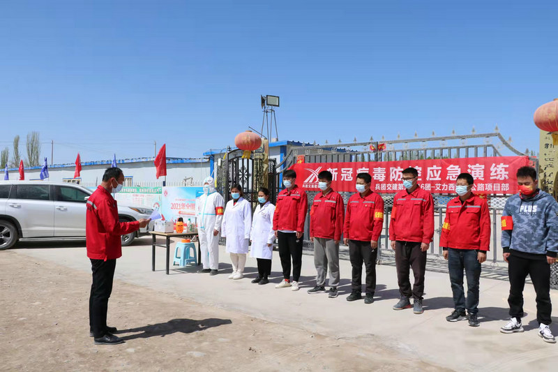 莎車訊(通訊員 徐藝源 臧明超)為全面加強建筑工地疫情防控工作,提高工地現(xiàn)場疫情防控應(yīng)急處置能力,確保在遇到疫情突發(fā)事件時,施工單位能夠快速、準確、有效的應(yīng)對,近日,兵團交建第三師46團-艾力西湖鎮(zhèn)公路項目在施工現(xiàn)場,開展了疫情防控應(yīng)急演練。