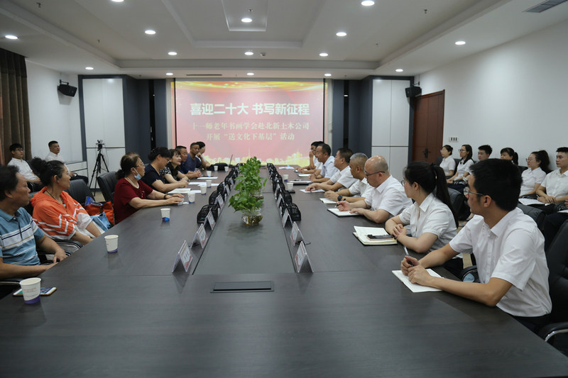 烏魯木齊訊(通訊員趙麗)為弘揚(yáng)中華傳統(tǒng)文化,用藝術(shù)搭建文化潤(rùn)疆平臺(tái),7月26日,十一師老干部局牽頭師老年書(shū)畫(huà)學(xué)會(huì)走進(jìn)兵團(tuán)建工市政交通集團(tuán)北新土木公司開(kāi)展“喜迎二十大·書(shū)寫(xiě)新征程”送文化進(jìn)企業(yè)活動(dòng)。