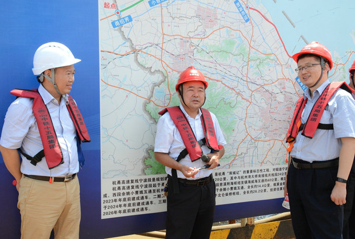 寧波市高等級公路建設管理中心副主任徐愛敏、寧波市交通局建管處處長葉昌勇、浙江省交投交通建設管理有限公司副總經理楊成安、監(jiān)理公司總監(jiān)章華鋒等陪同。