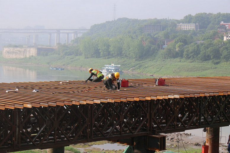 為了有序推進(jìn)施工進(jìn)度,項(xiàng)目部精心組織,科學(xué)安排,合理配置資源。優(yōu)化施組方案,改進(jìn)工法、工藝,實(shí)行24小時項(xiàng)目領(lǐng)導(dǎo)輪流帶班制,技術(shù)、安質(zhì)人員跟班作業(yè)監(jiān)督指導(dǎo)、盯控,施工作業(yè)人員盡心盡責(zé),嚴(yán)格規(guī)范,精心施工,以安全促生產(chǎn),以質(zhì)量保安全。在重慶進(jìn)入高溫天氣以來,項(xiàng)目部積極做好防暑工作,通過搭設(shè)遮陽棚、放置冰塊,抓兩頭、歇中間,避開高溫時段施工等措施,確保了在高溫期施工不停歇,產(chǎn)值完成不減少,施工計(jì)劃如期實(shí)現(xiàn)。目前廖家溪軌道專用橋P1、P2墩均已施工至28.5米,且東西兩岸鋼棧橋基本搭設(shè)完成,為上部結(jié)構(gòu)下弦梁鋼斜撐(鋼箱梁)及上弦梁施工創(chuàng)造了條件。
