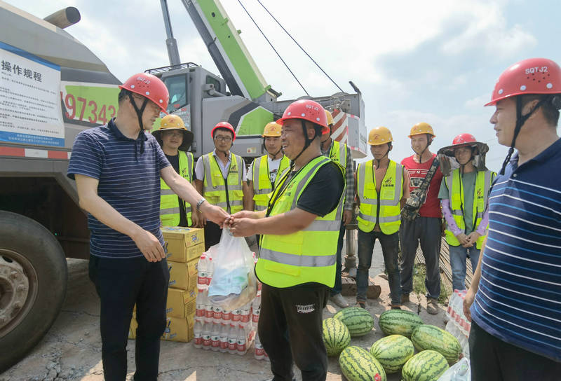 重慶訊(通訊員 單飛龍)炎炎酷暑送清涼、舉手投足顯關(guān)懷。8月5日上午,重慶雙錢高速土建二標(biāo)項(xiàng)目經(jīng)理李東寶代表項(xiàng)目部,深入施工項(xiàng)目現(xiàn)場(chǎng)及班組生活駐地,開展“夏送清涼”慰問一線活動(dòng),并為他們送去了冰糖、菊花、礦泉水、冰紅茶、西瓜及藿香正氣液等防暑降溫物品,用清涼和關(guān)懷傳遞為項(xiàng)目建設(shè)者們服務(wù)的真情,用行動(dòng)向新時(shí)代“工匠人”精神致敬。