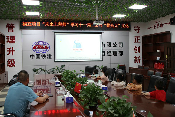 項目黨工委書記徐榮勰同志親自為“未來工程師”講解了“排頭兵”文化,詳細(xì)介紹了“排頭兵”文化的內(nèi)涵及釋義,帶領(lǐng)“小候鳥”集中觀看了公司文化宣傳片、鐵道兵建設(shè)時期的各類影像資料、“排頭兵”文化動漫視頻等,并鼓勵“小候鳥”加強(qiáng)自身學(xué)習(xí),提升自身本領(lǐng),努力成為對國家、對社會有用的棟梁之材。孩子們認(rèn)真聆聽“徐爺爺”教導(dǎo)、專注地觀看欣賞相關(guān)視頻,稚嫩的臉龐寫滿求知的渴望,職工們看到可愛的“小工程師”們的表現(xiàn),增強(qiáng)了歸屬感和自豪感。