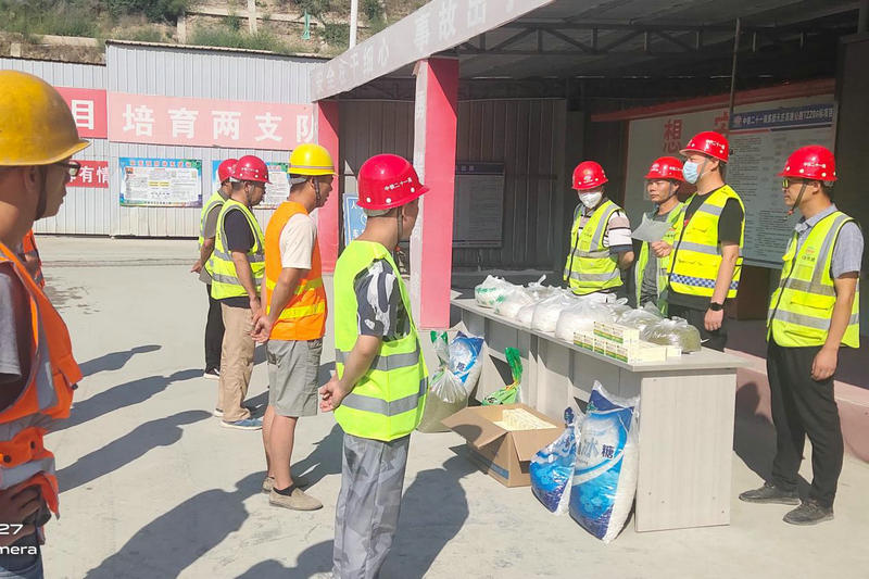 項(xiàng)目部領(lǐng)導(dǎo)班子成員向頂著酷暑作業(yè)的一線員工表示親切慰問和感謝,并向全體參建勞務(wù)人員送上綠豆、冰糖、藿香正氣水等防暑降溫物品,希望大家再接再厲,克服高溫困難,并要求一線施工人員要注意錯開極端高溫時間段,烈日下工作要采取防暑降溫措施,在緊抓安全和工期的同時,保障自身的身體健康。