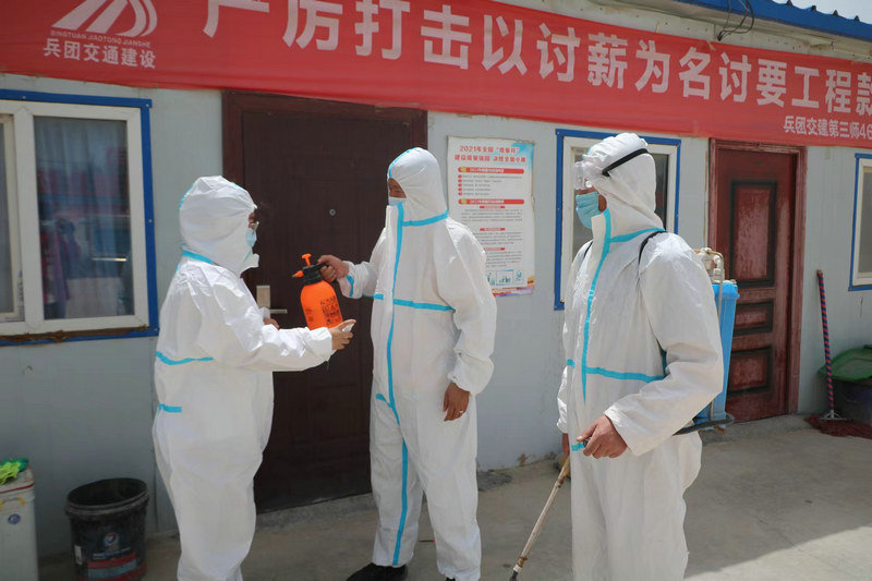 莎車訊(通訊員 臧明超 吳玉梅)近日,新疆部分地區(qū)連續(xù)出現(xiàn)無癥狀感染者,烏魯木齊市重點城區(qū)實行臨時性靜態(tài)管理措施,再次敲響了疫情防控警鐘。為確保項目在生全生產(chǎn)的前提下有序推進,兵團交建第三師46團-艾力西湖鎮(zhèn)公路項目打出疫情防控“組合拳”,全力以赴落實疫情防控工作。