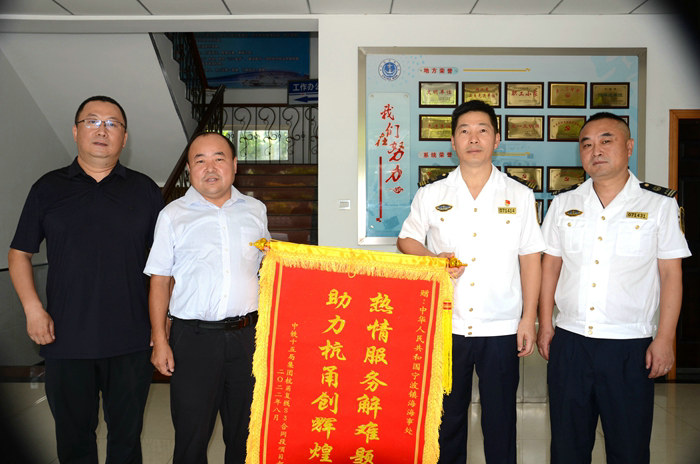 為表達謝意,杭甬項目部制作了一面上書“熱情服務解難題 助力杭甬創(chuàng)輝煌”的錦旗,送至寧波市鎮(zhèn)海區(qū)海事處。代東起表示,海事處與十五局目標一致,將一如既往地傾力支持杭甬項目建設,助推項目如期高效、優(yōu)質、安全完成架梁任務。