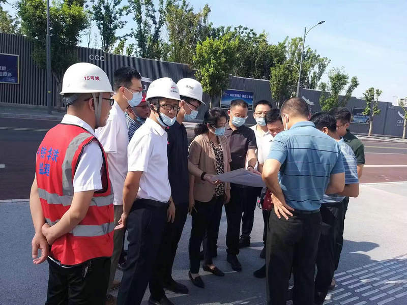 官波(右2)查看禮學(xué)路站施工現(xiàn)場(chǎng)