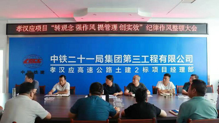 本網(wǎng)湖北孝感8月22日訊(通訊員 賈瑛)8月20日,為全面整治項目全體干部職工近期在作風方面存在的突出問題,進一步轉變觀念、強化作風、提高效率、規(guī)范管理,進一步增強紀律規(guī)矩意識,筑牢思想防線,中鐵二十一局三公司孝漢應項目部組織全體職工召開“轉觀念 強作風 提管理 創(chuàng)實效”紀律作風整頓大會。