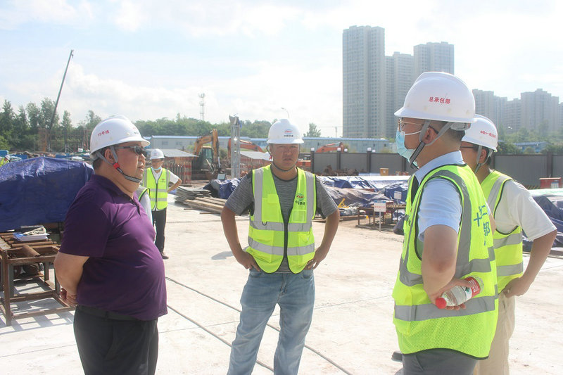 總承包部指揮長李兵(左1)在現(xiàn)場督查