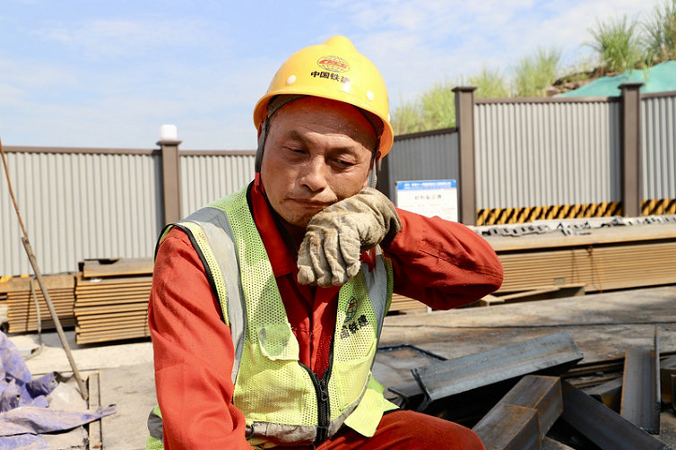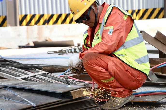 工人專心作業(yè),顧不上汗水從鼻尖滑落