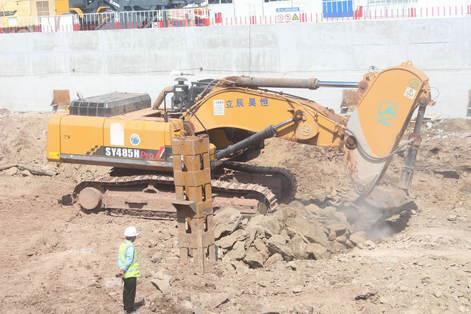 挖掘機司機在熱氣蒸騰的駕駛室里堅守基坑開挖不停歇