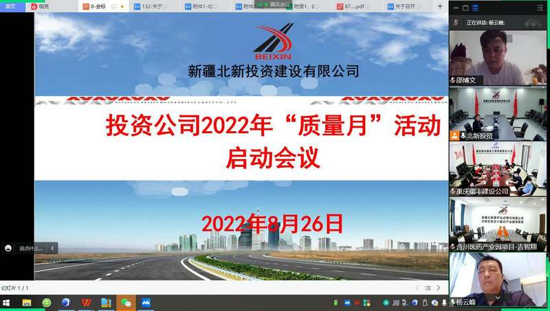 烏魯木齊訊(通訊員 王冬)8月26日上午,北新投資公司召開2022年“質量月”活動啟動會, 此次會議以“推動質量變革創(chuàng)新 促進質量強國建設”為主題。會議由該公司副總經(jīng)理、總工程師楊云峰主持,公司機關安質環(huán)部、各單位質量分管領導、技術負責人、項目部生產(chǎn)經(jīng)理、工程部全體人員,負責人共31人參加。