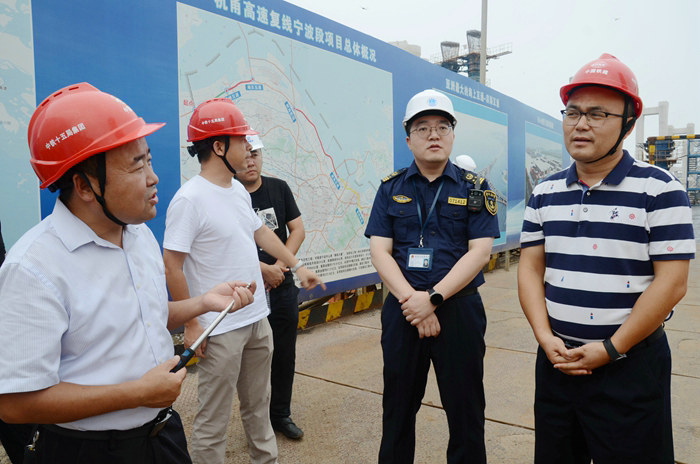 本網(wǎng)訊(呂奎元 王志琴 張瑤)8月30日下午,寧波市海事局通航管理處處長(zhǎng)楊華兵到杭甬項(xiàng)目濱?;ネz查指導(dǎo)工作,寧波市鎮(zhèn)海區(qū)海事處政委董迪、鎮(zhèn)海區(qū)甬江口大隊(duì)大隊(duì)長(zhǎng)陳立勇陪同檢查指導(dǎo)。