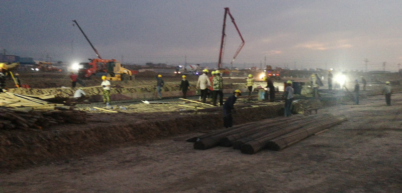 為確保施工進(jìn)度,他們按照優(yōu)先接入、優(yōu)先放行、優(yōu)先編掛、優(yōu)先對(duì)位“四優(yōu)先”原則,優(yōu)化施工調(diào)度、勘察設(shè)計(jì)、施工排布、對(duì)接上級(jí)及兄弟單位等各作業(yè)環(huán)節(jié)緊密銜接,最大限度壓縮設(shè)備和人員非作業(yè)停留時(shí)間,加快人員和設(shè)備周轉(zhuǎn),全力保障建筑材料運(yùn)輸供應(yīng)。另外,他們還根據(jù)現(xiàn)場(chǎng)情況不斷細(xì)化施工方案,設(shè)計(jì)、施工、優(yōu)化三管齊下,調(diào)動(dòng)管理人員16人,工人114人,灑水車1臺(tái),挖掘機(jī)3臺(tái),裝載機(jī)1臺(tái),渣土車3輛,平地機(jī)1臺(tái),壓路機(jī)1臺(tái),發(fā)電機(jī)3臺(tái),鋼筋彎曲機(jī)1臺(tái),鋼筋切斷機(jī)一臺(tái)有序推進(jìn)工程建設(shè)。他們采取管理人員兩班倒、勞務(wù)工人三班倒、24小時(shí)不間斷作業(yè)等方式,鉚足勁晝夜奮戰(zhàn)在施工一線,爭(zhēng)分奪秒、搶抓進(jìn)度,有力保障了疫情防控臨時(shí)防疫設(shè)施點(diǎn)的建設(shè)進(jìn)度。截止目前,方倉(cāng)集成房已進(jìn)場(chǎng)60間,彩板房32間;鋼筋進(jìn)場(chǎng)138.69t,混凝土進(jìn)場(chǎng)221m³,現(xiàn)辦公桌椅,宿舍被褥、防疫物資等相關(guān)物品已到位,管理人員已具備辦公條件和住宿條件,現(xiàn)場(chǎng)鋼筋加工廠正在加工制作,基礎(chǔ)槽已具備綁鋼筋條件,已形成流水作業(yè)?;炷烈讶雸?chǎng),1號(hào)艙混凝土已澆筑完成。