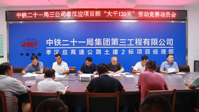 本網(wǎng)湖北孝感9月6日訊(通訊員 賈瑛 記者 尹登明)9月5日晚上,為貫徹落實(shí)公司《關(guān)于開(kāi)展2022年“大干120天”勞動(dòng)競(jìng)賽活動(dòng)的通知》文件精神,激發(fā)項(xiàng)目員工的工作熱情、確保全年產(chǎn)值任務(wù)如期完成,中鐵二十一局三公司孝漢應(yīng)項(xiàng)目召開(kāi)2022年“大干120天”勞動(dòng)競(jìng)賽動(dòng)員會(huì),項(xiàng)目部全體職工、工區(qū)負(fù)責(zé)人、拌合站站長(zhǎng)、試驗(yàn)室主任、項(xiàng)目技術(shù)骨干、各施工隊(duì)負(fù)責(zé)人參會(huì)。會(huì)議由項(xiàng)目總工牛六喜主持。
