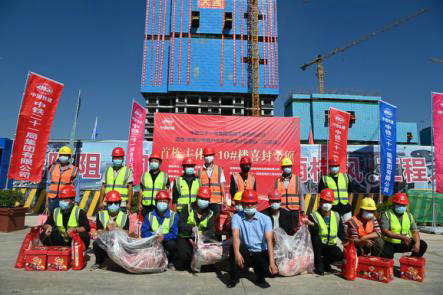 上午10點(diǎn)18分,道合·迎曦公館棚戶區(qū)改造安置小區(qū)項(xiàng)目施工現(xiàn)場(chǎng)鞭炮齊鳴,臨夏工程公司道合·迎曦公館項(xiàng)目三標(biāo)段10#樓作為該項(xiàng)目全標(biāo)段首棟20層主體結(jié)構(gòu)封頂,并舉行封頂慶典儀式。在慶賀圓滿封頂?shù)耐瑫r(shí)喜迎中秋佳節(jié)的到來(lái),寓意項(xiàng)目在后續(xù)的施工中能夠繼往開來(lái),早日?qǐng)A滿完成施工任務(wù)。