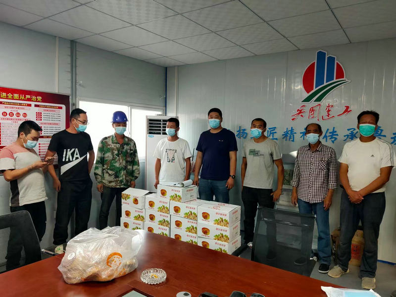 該項目位于昆玉市周邊,地處沙漠腹地,風沙大,條件苦,自開工以來,工人們斗風沙、戰(zhàn)酷暑,冒嚴寒,長期奮戰(zhàn)在施工一線,用勤勞的汗水換取了工程的質量與進度。中秋來臨,項目部“一班人”想工人所想,給工人所需,及時組織開展慰問活動,感謝工人們的辛勤付出。