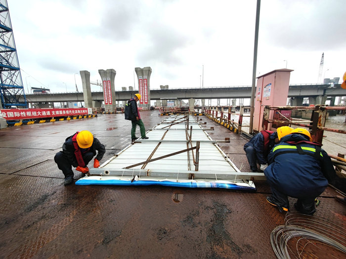 據(jù)氣象部門預(yù)告,12日下午兩點,12號臺風(fēng)“梅花”位于舟山偏東南方向約610公里的洋面上,中心附近最大風(fēng)力13級,以每小時5—10公里的速度向偏北方向移動,夜間進入東南部海域,14日夜間至15日登陸舟山至寧波一帶海面。寧波市的臺風(fēng)應(yīng)急響應(yīng)已經(jīng)升至3級。根據(jù)寧波市防汛抗臺抗旱指揮部關(guān)于做好抗臺的通知要求,該項目部緊急召開了由班子成員、部門負責(zé)人、各施工隊長、專兼職安全員參加的應(yīng)對臺風(fēng)“梅花”的安全部署會,將任務(wù)落實到人頭,繼續(xù)實行班子成員值班制度,誰主管哪一片,要確保哪一方平安。會后馬上組織人員冒著狂風(fēng)暴雨備戰(zhàn)臺風(fēng),抓好各項舉措的落實。濱海互通施工現(xiàn)場矗立的十多塊大型宣傳牌,將架子切割后放倒在棧橋上,并對小型施工標(biāo)牌、安全標(biāo)識牌、懸掛在棧橋護欄上的橫幅標(biāo)語用繩索進行加固;凡是在現(xiàn)場的汽車吊、各種車倆、小型機具,全部撤離,不能撤離的多臺大型履帶吊,放下大臂,由專人進行加固;將正在施工的橋墩鋼筋籠、模板,用焊接好的鋼架加固四周,防止被大風(fēng)扭曲變形;工地停止一切施工,不得為搶工期而忽視員工的安危。同時,備足抗臺物資,沙袋、食品,并組建一支抗臺搶險隊,隊長由一名副經(jīng)理擔(dān)任,隊員由30名身強力壯的年輕員工組成。
