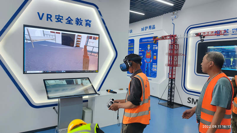 在中秋節(jié)期間,該項(xiàng)目為加強(qiáng)現(xiàn)場(chǎng)安全管理,組織現(xiàn)場(chǎng)作業(yè)人員250余人分批次在智慧科技展廳進(jìn)行了安全事故體驗(yàn),體驗(yàn)項(xiàng)目包含高空墜落體驗(yàn)、綜合用電體驗(yàn)、護(hù)欄傾倒體驗(yàn)、機(jī)械傷害體驗(yàn)、安全帽撞擊體驗(yàn)等建筑行業(yè)常見(jiàn)安全隱患。