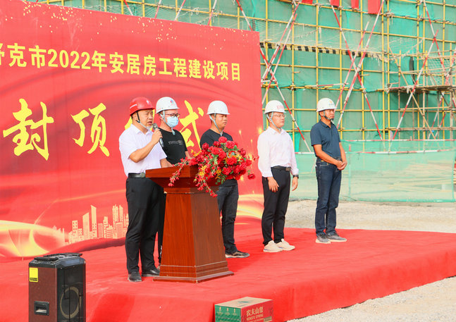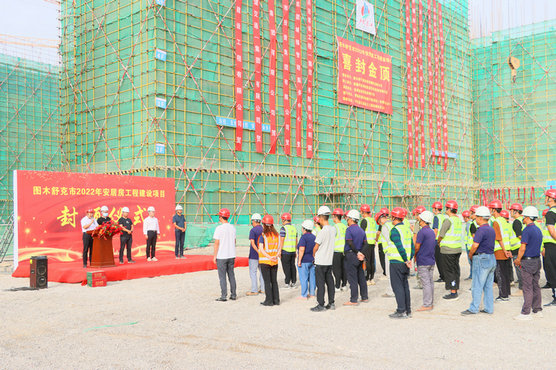 第三師圖木舒克市2022年安居工程建設(shè)項(xiàng)目自今年6月初開工以來,統(tǒng)籌抓好疫情防控和安全生產(chǎn),在項(xiàng)目實(shí)施封閉管理的艱難條件下,項(xiàng)目部全體員工及參建者齊心協(xié)力、共克時(shí)艱、努力拼搏,力爭(zhēng)按照工期節(jié)點(diǎn)要求向業(yè)主方交上滿意的答卷。此次順利封頂,對(duì)整個(gè)項(xiàng)目建設(shè)起到了積極的推進(jìn)作用,在封頂儀式上,該項(xiàng)目部全體參建職工表示將再接再厲、繼續(xù)發(fā)揚(yáng)連續(xù)奮戰(zhàn)的精神,保質(zhì)保量完成后續(xù)建設(shè)工作。