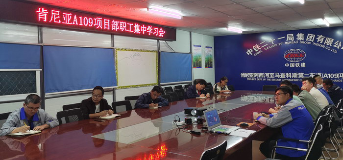 本網(wǎng)肯尼亞內(nèi)羅畢9月17日訊(通訊員 盛俊杰)近日,為進(jìn)一步提高全員學(xué)習(xí)動(dòng)力,展現(xiàn)項(xiàng)目良好精神風(fēng)貌,中鐵二十一局三公司肯尼亞A109公路項(xiàng)目部組織職工進(jìn)行黨史教育不學(xué)習(xí)。項(xiàng)目部全體員工共計(jì)10余人參加會(huì)議,會(huì)議由項(xiàng)目副書(shū)記馮民生主持。
